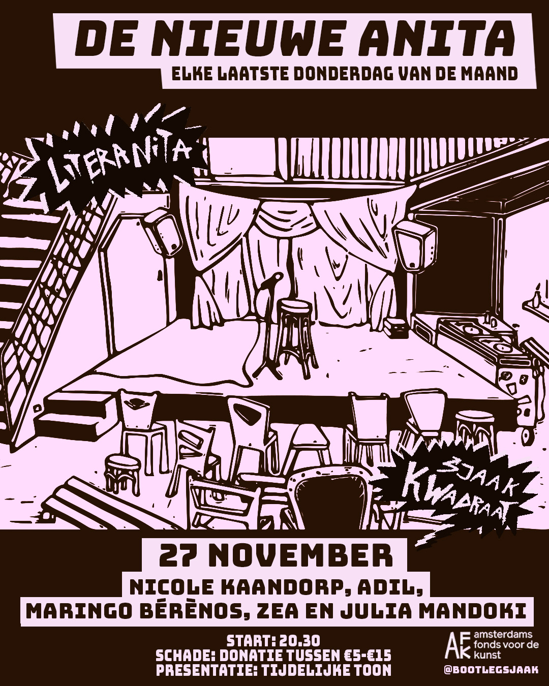 — Spoken Word —Literanita met Maringo bérènos, Nicole Kaandorp, Zea, Adil en Julia MandokiNovember 27 MORE INFO