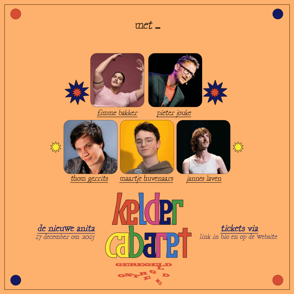 17 december is alweer de laatste editie van Keldercabaret van dit jaar! En wát voor één gaat het worden?! We hebben weer een geweldige lineup met gevestigde namen en opkomende talenten die allen nieuw materiaal komen testen. Voor een tientje ben jij erbij, zien wij jou 20:15 in De Nieuwe Anita?