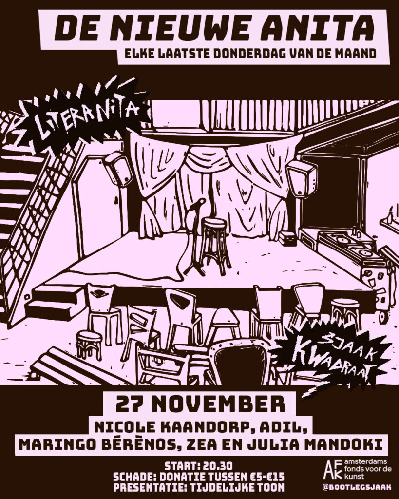Sjaak Kwadraat brengt met Literanita elke laatste donderdag van de maand weer een nieuwe lading geprogrammeerde muziek, poëzie, spoken word, theater en performance naar de kelder van de nieuwe Anita.
