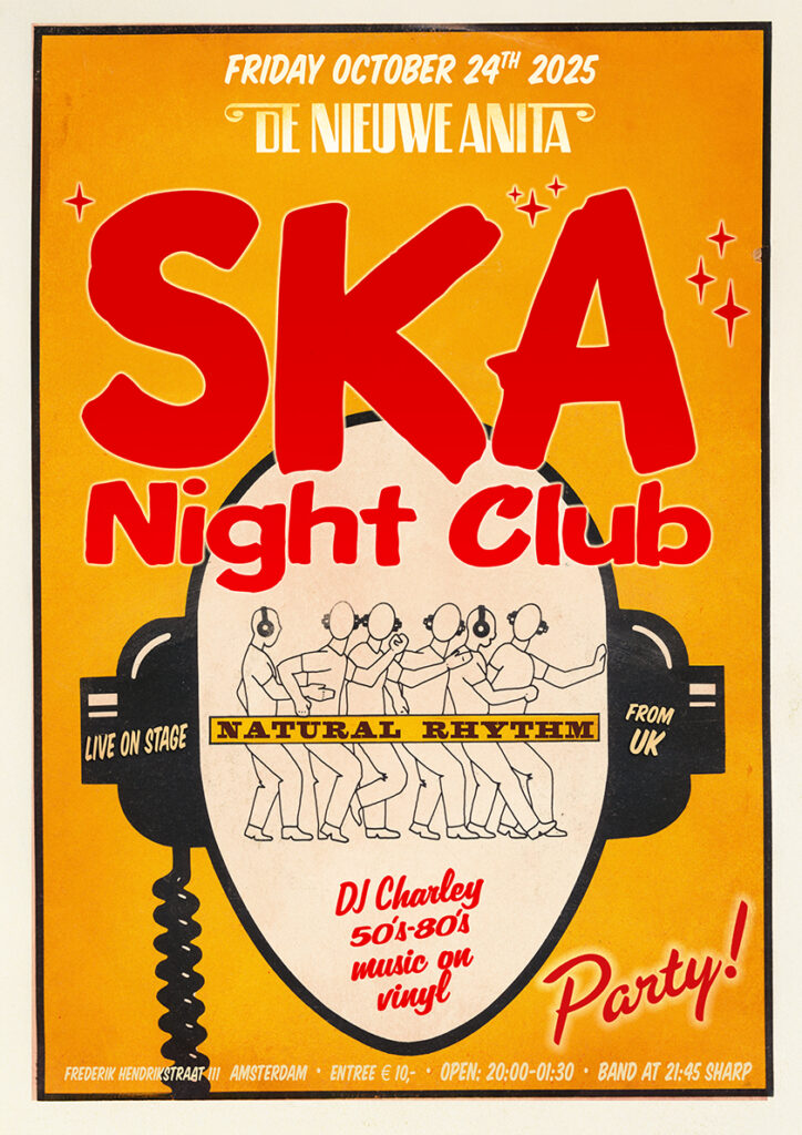 Party ’till 01:00 with Deejay Charley who will play all types of SKA and Rock Steady: from original Jamaican Ska on vinyl singels to 2-TONE SKA from the 80’s and more!
