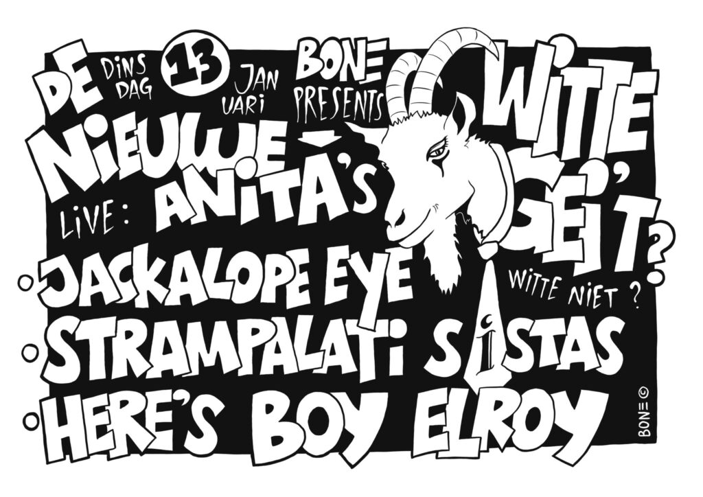 Deze maand gecureerd door onze huis gei’t Bone met Here’s Boy Elroy, Strampalati Sistas, en Jackalope Eye.